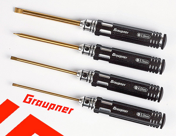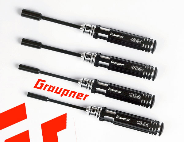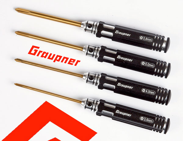 | | Diese Qualitäts- und Präzisionswerkzeuge sollten in keiner Werkzeugtasche eines Modellbauers fehlen. Egal ob auf dem Flugfeld, in der Halle, am See oder auf der Rennbahn. Die Aluminiumgriffe haben eine Länge von 103 mm und die Einsätze sind aus legiertem Stahl, teilweise Titan überzogen, mit einer Länge von 80 mm
