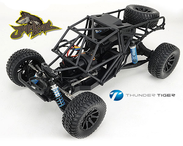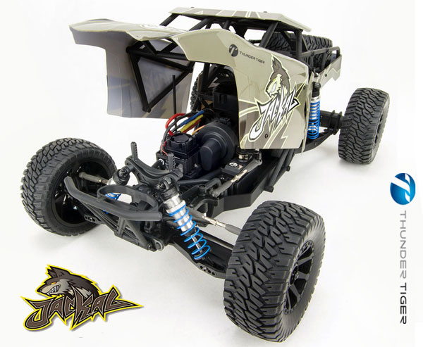 | | Wie seine leistungsstarken Original Vorbilder ist auch der Jackal dazu erschaffen, sich nicht mit der gezähmten Natur von befestigten Off Road Bahnen zufrieden zu geben. OK, auch auf solchen RC Buggy Rennstrecken macht er wahrlich keine schlechte Figur, aber der echte Abenteuer Action Spaß fängt für den Jackal im rohen Off Road erst so richtig an, wo traditionell übliche Off-Roader an die Grenzen ihrer Geländetauglichkeit stoßen. Wo kein Weg ist, da schafft sich der Jackal einen…! Ein stabiler Überrollkäfig sorgt für eine mega-coole Optik und garantiert zudem den nötigen Schutz für die wildesten Action und Bashing Stunts.