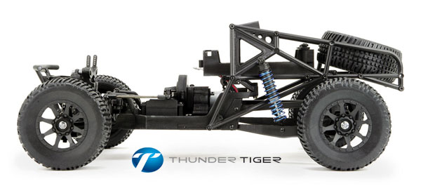 • So, wie es sich für ein jedes Off Road Vehikel gehört: Glatte Chassis Unterseite mit gesenkten Schrauben, sodass der JACKAL auch bei den unvermeidlichen Bodenkontakten in hartem Off Road geschmeidig über Hindernisse hinwegrutschen kann, ohne sich zu verhaken