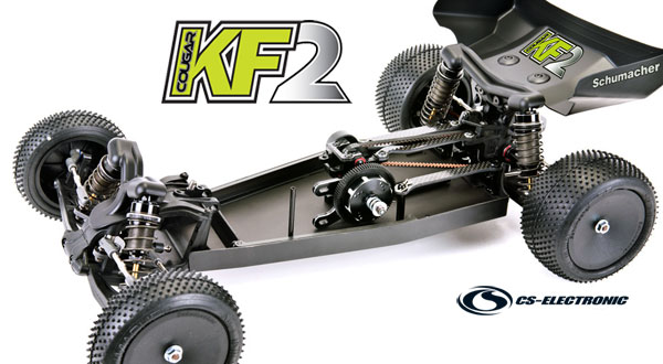 | | Schumacher hat nach dem Gewinn der Europa Meisterschaft eine neue 2WD-Mittelmotorbuggy Version, vorgestellt. Der Cougar KF2 SE basiert auf dem Cougar KF2 und ist mit einem Aluminiumchassis, einer veränderbaren Position der Motorhalterung und einer neuen Karosserie ausgerüstet. Erhältlich ist der Buggy als Baukasten oder vormontiert ab November 2015.