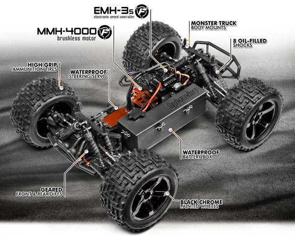 Der Bullet ST Flux bewältigt jede Art von Hindernis, da er dank seiner immensen Leistung durch seinen kraftvollen Brushless Motor und seinem 4WD Antrieb quasi unaufhaltsam ist. Hohe Geschwindigkeiten und atemberaubende Sprünge haben noch nie mehr Spaß gemacht! Das haltbare und robuste Design des Bullet Trucks spricht eine unmissverständliche Sprache - Fahrspaß garantiert! Zusätzlich ist der Truck wasserdicht, sodass er auch bei widrigen Wetterbedingungen das ganze Jahr über in Betrieb genommen werden kann.