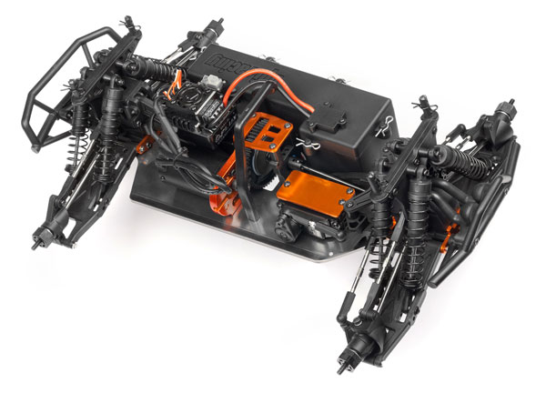 Unter der brandneuen Lackierung glänzt der Bullet Flux durch eine solide 8-Dämpfer Doppel-Querlenker Aufhängung, einen stabilen Antriebsstrang, Metall-Zahnrädern und ein zuverlässiges 2,4GHz Funkfernsteuer System. Alles was benötigt wird, ist ein Fahrakku - und Nerven aus Stahl, um den kraftvollen Bullet Flux zu steuern!