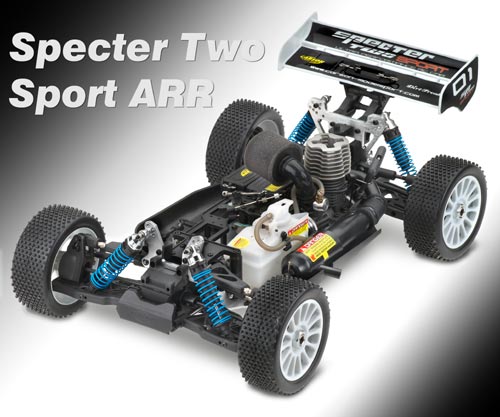 | | Carson präsentiert den Specter Two Sport als ARR Version. Neueste Technik und umfangreiche Tuningmöglichkeiten machen den Specter Two zum wahren Racer. Am auffälligsten ist die neue aerodynamisch optimierte Karosserie. Die Vorderachse, ausgestattet mit Alu Lenkhebel, wurde ebenfalls optimiert um noch mehr Gripp zu erzielen und die Lenkung noch leichtgängiger zu machen. Die Fahrwerksgeometrie erlaubt es, den Specter auf jeden Untergrund abzustimmen. Der komplette Antriebsstrang ist aus gehärtetem Stahl. Er ist somit sehr robust und widerstandsfähig. Des Weiteren wurde dieser auf einen sehr niedrigen Schwerpunkt ausgelegt, welcher die Fahrleistung, Traktion und Wendigkeit verbessert. Durch das 2-Scheiben-Bremssystem mit Metall- Bremsscheiben ist die Bremskraft der Vorderachse und der Hinterachse getrennt einstellbar. Die neueste Generation des .21er Force Motors mit mehr Leistung gewährleistet ein einfacheres Handling. Aufgrund des hohen Vorfertigungsgrades ist dieses Modell innerhalb kürzester fahrbereit.