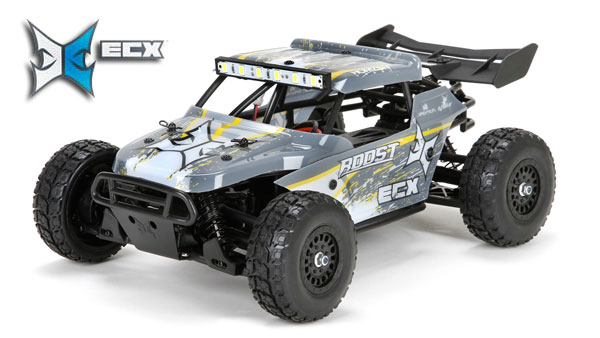 | | Mit Vollgas durch den Sand - mit dem ECX Roost 1/18 4WD Desert Buggy. Im unverwechselbaren Buggy-Design macht der kleine Roost die Umgebung unsicher. Dank einer Kombination aus wassergeschützter Elektronik und wellengetriebenem Allradantrieb bleiben weder Asphalt noch härteres Gelände verschont.