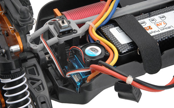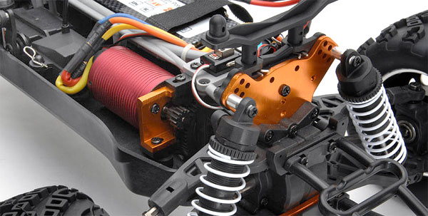 Das Modell ist serienmäßig mit einem Wheelie Bar ausgestattet. Damit kannst Du bei voller Beschleunigung auf den Hinterrädern fahren. Durch den Allradantrieb und die 4 Öldruckstoßdämpfer macht er vor keinem Hindernis halt. Die langen Federwege ermöglichen weite und hohe Sprünge.