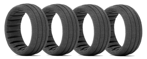 | | Die schwarze medium Einlage wurde entwickelt, um die seitliche Verwindung des Reifens zu vermindern und zeitgleich die vertikalen Kräfte bei Sprüngen besser abfangen zu können. Die Verwendung von weicherem Material oder das Aushöhlen des inneren Kreisumfangs des Reifens, wie es andere Hersteller tun, macht das Fahrverhalten des Buggys unpräzise und verringert die Beschleunigung auf Sprüngen. Zusätzlich verkürzt es die Lebensdauer des Reifens deutlich.