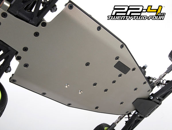 Die Aluminium-Chassisplatte ist für eine optimale Passform CNC-gefräst. Strategisch gefräste Taschen einschließlich einer offenen Tasche unter dem Motor reduzieren das Gewicht ohne dabei Kraft zu verlieren.