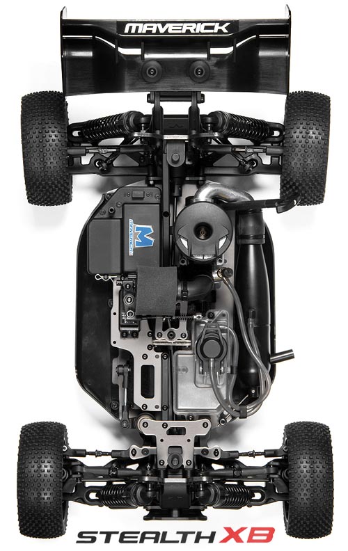 | | Der Maverick Stealth XB Buggy ist eine hochwertige, sofort einsetzbare Rennmaschine mit tollen Features! Designed für härteste Renneinsätze ist der Stealth XB das ultimative Premium Racing Starter- Kit. Er ist der erste 1/8ter Premium- RTR Buggy mit rennlegalem .21 Nitromotor und Wettbewerbsreifen. Große Stoßdämpfer mit 15mm Durchmesser dämpfen auch die gröbsten Unebenheiten und die Trekker Reifen von Elements geben dem Stealth XB sicheren Halt auf jedem Untergrund. High-Power Kohlefaser-Bremsbacken auf Stahlbremsscheiben mit Belüftungslöchern verzögern den Stealth völlig kontrollierbar.