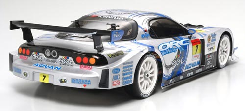 | | Der mit einem Wankelmotor angetriebene ORC Amemiya SGC-7 gewann 2008 das Eröffnungsrennen der Japanischen Super GT Serie. Danach erreichte der Amemiya in seiner neuen silbernen Lackierung noch zwei 3. Plätze im 4.ten und 6.ten Rennen. Tamiya präsentiert den ORC Super GT Racer auf dem TB-03 Chassis im Maßstab 1:10.