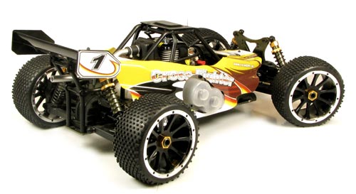 | | Die neueste Entwicklung aus dem Hause CS-Electronic ist der 1:5 Cross-Fighter Monster Buggy. Das 2-Takt Großmodell basiert auf der Plattform des CS-T-Rexx und konnte bereits in den ersten Tests durch beste Performance und Haltbarkeit überzeugen. Das Großmodell wird von einem 28cc 2-Takt Motor angetrieben und beschleunigt den Cross-Fighter beispiellos. Für das einfache Handling sorgen das perfekt abgestimmte Fahrwerk und der 4WD-Allradantrieb. Alle verwendeten Materialien sind aus dem harten Wettbewerb abgeleitet und stehen Pate für höchste Qualität und uneingeschrängten Fahrspaß. Der CS Cross-Fighter kommt als High Class RTR komplett montiert mit einer FM Fernsteuerung fahrfertig ab Werk. Egal ob Anfänger oder Profi, jeder kommt auf Anhieb mit dem Cross-Fighter zurecht.