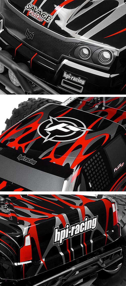 | | HPI präsentiert die neue fertig lackierte, beklebte und ausgeschnittene GT-2 Karosserie für den Savage Flux HP (SCHWARZ/GRAZ/ROT/SAVAGE FLUX) als original Ersatzteil. Diese Karosserie passt auch auf dem Savage X SS, Savage X 4.6 RTR, Savage X 4.6 Reverse RTR, Savage X SS (Without Engine) und Savage 3.5 RTR.