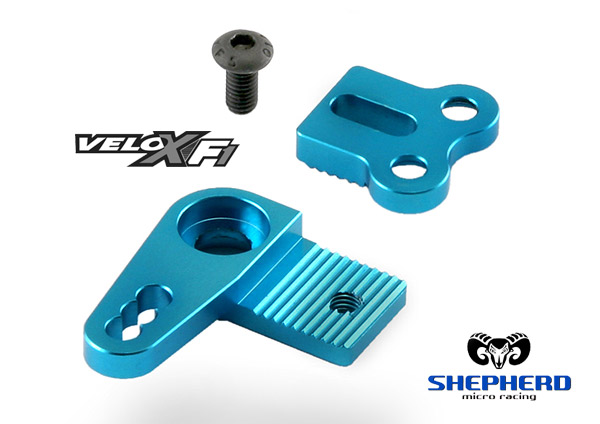 | | Shepherd präsentiert einen blau Eloxierten Aluminium Ackermann Umlenkhebel für den Velox F1. Dieser ist aus hochfestem 7075 T6 Aluminium gefertigt und ermöglicht eine feiner Anpassung der Ackermann-Position und verbessert gleichzeitig die Steifigkeit der Lenkung. Das Set ist auch in schwarz (#127302 b) erhältlich und sofort lieferbar.