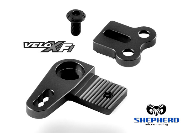 Team Shepherd is happy to announce the latest option part for the Velox F1. The new optional ackermann-lever made of high grade 7075 T6 aluminium allows to fine-tune the ackermann geometry and improves the rigidty of the steering linkage at the same time. The set is also available black anodized (#127302B) from now on.