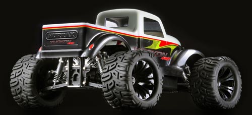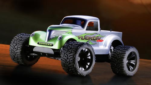 | | Mit dem 1:5er Yuckon 4WD Monstertruck aus dem Hause Hurrax präsentiert Ansmann Racing ein wahres Monster dieser Klasse. Mit einer Länge von 82cm und einer Breite von 62 cm erahnt man nur die Ausmaße dieser Monstermaschine. Wie schon der Crypton Buggy zeichnet sich der Yuckon ebenfalls durch seine stabile Konstruktion mit vielen gefrästen Teilen aus. Der Yuckon 4WD verfügt über zwei großvolumige Öldruckstoßdämpfer pro Rad. Besonders die Pickup Karosserie im dreißiger Jahre Stile ist eine Augenweide.
