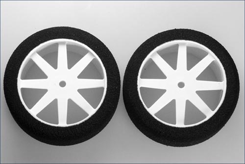 Die Reifen sind auf den Felgen bereits fertig verklebt. Die weiße Sternfelge zeichnet sich durch sehr hohe Festigkeit und sehr hohe Torsionssteifigkeit aus. So überstehen die Felgen auch härtere Feindberührungen ohne Schaden. Weiterhin ergibt sich ein präzises Fahrverhalten, das dem Piloten ein exaktes Steuergefühl vermittelt. Die Felgenaufnahmen passen für Kyosho, Mugen und andere Fabrikate.