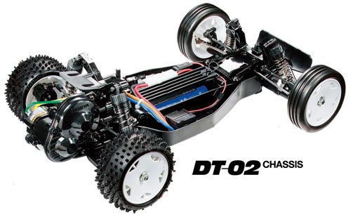 - Der 1/10 R/C Off-Road Buggy Bausatz basiert auf den benutzerfreundlichen DT-02 2WD Chassis.