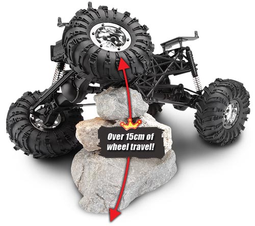 Der Crawler King ist bereit für den Wettbewerb in der 2,2 Crawler Klasse. Mit über 15cm Federweg und dem längsten Radstand der noch legal für diese Klasse ist macht er keine Kompromisse.
