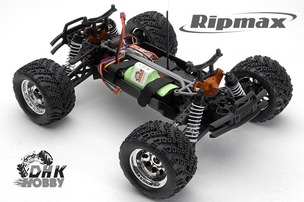 | | Wenn Sie einen großen Allrad-Monster Truck mit einem kräftigen Motor suchen sollten - dann haben Sie ihn mit dem DHK Crosse Brushed gerade eben gefunden! Ausgeliefert als RTR Modell mit vorinstalliertem 550er Motor, Servo, Empfänger und Fahrtenregler, müssen Sie hier nichts mehr weiter tun außer die Akkus mit dem mitgelieferten Ladegerät aufzuladen und Batterien in den ebenfalls mitgelieferten Sender einzulegen, und schon können Sie loslegen. Lassen Sie sich nicht von dem Brushed Motor täuschen, er hat einiges an Power zu bieten und wird Sie nicht enttäuschen. Der Crosse bietet eine tolle 4WD Truck Leistung zu einem wirklich tollen Preis! Die neu entworfenen Chrome-Felgen und weichen Reifen lassen den Monstertruck noch besser dastehen und bieten einen tollen Offroad Gripp! Ein Chassis Cover rundet das All-Terrain Paket ab und hilft dabei, Wasser und Staub größtenteils am Eindringen zu hindern. Der Crosse wurde aus strapazierfähigem Verbund-Kunststoff und Aluminium hergestellt, wie etwa die Motorhalterung für bessere Stabilität. Die große Bodenfreiheit erlaubt es dem Crosse auch durch unwegsames Gelände zu fahren, und sein 4WD Allradantrieb und das Aufhängungssystem helfen dabei natürlich mit. Die großen Öldruckstoßdämpfer erlauben es dem Crosse jedes Hindernis zu überwinden und sehen dabei auch noch stylish aus. Die Differentiale und Stoßdämpfer sind mit Öl befüllt, daher kann der Fahrer sie individuell für jedes Gelände anpassen.