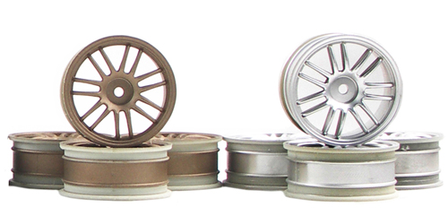 | | Neu im Sortiment von Kyosho Deutschland sind sechs verschiedene RAYS-Felgen aus der Serie Route 246. Diese sind für den Einsatz in Glattbahnmodellen im Maßstab 1:10 vorgesehen. Es handelt sich um perfekte Nachbildungen der Felgentypen TE37 (bronzefarben oder weiß), CE28N (bronzefarben oder silbern) und RE30 (bronzefarben oder silbern) von VOLK Racing. Der Preis pro Satz mit vier Kunststoff-Felgen liegt bei 18,90 Euro.