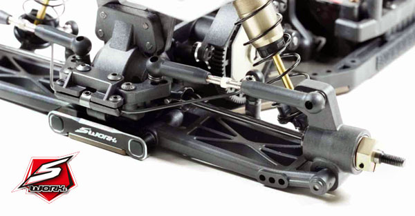 Serienmäßig ist die vordere Stoßdämpferbrücke in 4-mm-Carbon-Teppichversion und eine neu gestaltete vordere C-Hub-Geometrie. Die Teflonbeschichtung der Kolbenstangen sorgt für die reibungsloseste Funktion, die Sie sich vorstellen können. Black Line-Federn mit einem neu gestalteten, verdrehsicheren Federhalter sind auch im SWORKz S12-2C-Kit Standard.