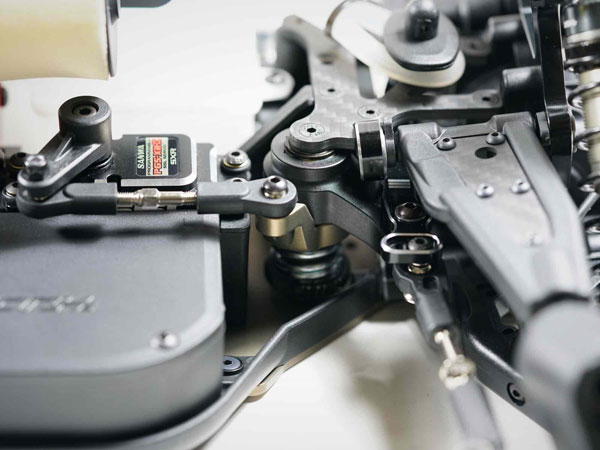Der neue S35-4 EVO verfügt über ein brandneues Lenk-Lay-Down-Lenkglocken-Servosystem. Dieses neue Ackerman-Design bietet dem Fahrer eine bessere Kontrolle über den S35-4 EVO Buggy.