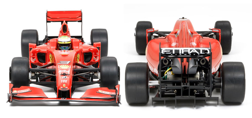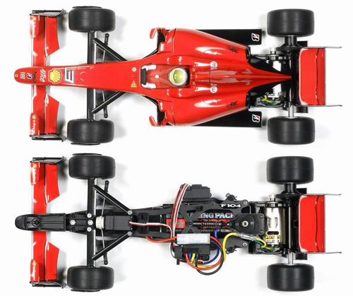 | | Mit dem Bausatz des Ferrari F60 der 2009er Saison präsentiert Tamiya das zweite Formelmodell auf dem F104-Chassis. Das offiziell lizenzierte R/C- Modell ist absolut vorbildgetreu und überzeugt mit vielen technischen Detaillösungen und perfekten Proportionen. So sind der charakteristische Front- und Heckspoiler, der hintere Diffusor, die Seitenspiegel und die verkleideten Querlenker separat nachgebildet worden. Seinen ersten Renneinsatz hatte der F60, dessen Bezeichnung auf das 60-jährige Ferrari F1-Jubiläum zurückzuführen ist, beim Australien GP, dies mit den Fahrern Kimi Raikkonen und Felipe Massa.