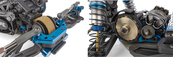• 5-gear laydown transmission with low profile motor mount moves weight of motor closer to the center of the car