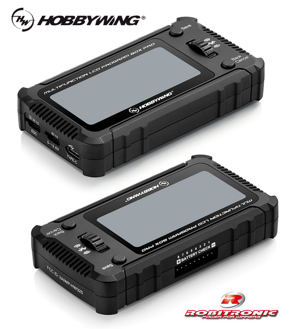 | | Die multifunktionale LCD Programmierbox Pro von Hobbywing bietet mit dem 2.8´ großen LCD-Bildschirm die Möglichkeit Brushless Regler komfortabel und schnell zu programmieren - sei es unterwegs oder Zuhause am Computer. Mit einem USB-C Adapter kann die Box zusätzlich an einen Computer angesteckt werden, um so beispielsweise auch die Firmware zu aktualisieren. Als weiteres Features kann die LCD Programmierbox außerdem noch die Spannung einzelner Lithium-Zellen oder ganzer Packs messen. Also drei hervorrangende Funktionen in einem kompakten Gerät.