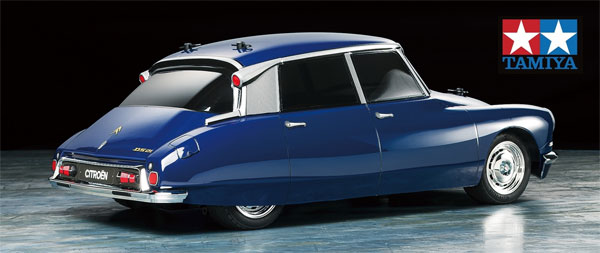 | | TAMIYA präsentiert den Citroen DS auf dem MB-01 Chassis. Der DS feierte sein Debüt 1955 und sorgte damals mit seinem ungewöhnlichen Design für viel Aufsehen. Bis 1975 wurden 1,45Mio Fahrzeuge produziert und wurde somit zu einem der bekanntesten Autos des 20. Jahrhunderts.