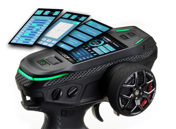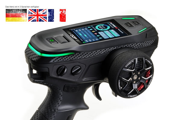 Das große 4,0 x 5,3cm Farbdisplay zeigt alle wichtigen Parameter übersichtlich an. Die Menüführung teilt sich in 3 Teile auf, welche einfach zu Verstehen sind. Das Hauptmenü konzentriert sich auf die Alltagseinstellungen wie Trimmung und Kanaleinstellungen während sich das Modell-Menü auf spezielle Funktionen der Fahrzeuge wie z.B. MIX Einstellungen konzentriert. Das dritte Menü ist zuständig für die Grundeinstellungen der Fernsteuerung. Hier können unter anderem Alarm, Display und Sound Einstellungen vorgenommen werden.