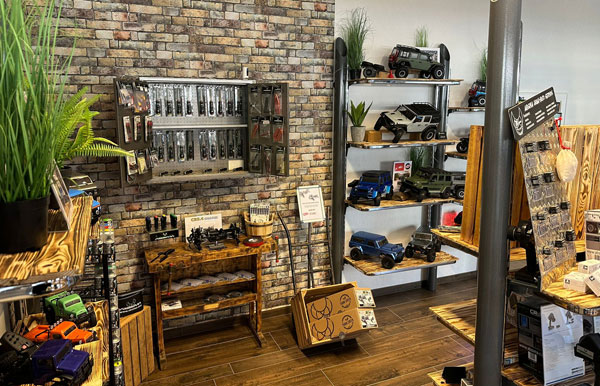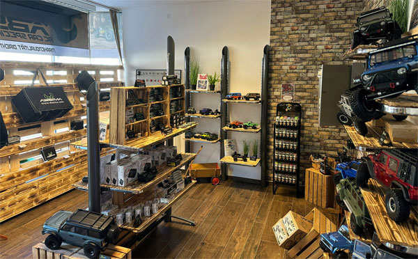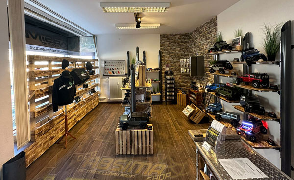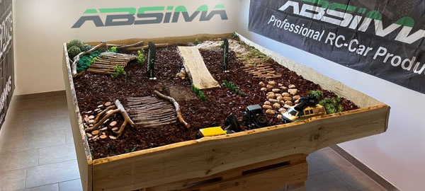 Eine kleine Crawler Strecke für die Mini Crawler Modelle findet sich im Shop, wo nach Lust und Laune ausprobiert und gefahren werden kann.