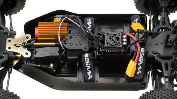 Das Fahrkonzept ist in seiner Klasse führend in Bezug auf Leistung und Zuverlässigkeit und beschleunigt das Fahrzeug auf bis zu 70 km/h (4S LiPo Betrieb). Das Kühlgebläse des Fahrtenreglers hält die Temperatur während der Fahrt konstant. Der 3668er Brushless Motor liefert satte Leistung an die Räder. XT90 Stecker sorgen für eine zuverlässige Verbindung zwischen Fahrtenregler un den von dir gewählten LiPo Akkus. Wir raten zu Qualitätsbatterien mit hoher Kapazität und einer C-Rate von mindestens 50C, um das volle Potential ausnützen zu können.