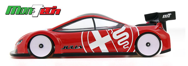 | | Der italienische Karosseriehersteller Mon-Tech Racing präsentiert seine neue 1:10 Tourenwagen Karosserie namens Julia. Ausführliche Tests haben gezeigt, dass die Julia auf gerader Strecke eine hervorragende Geschwindigkeit bietet, ein großer Vorteil für Stock-Klassen.