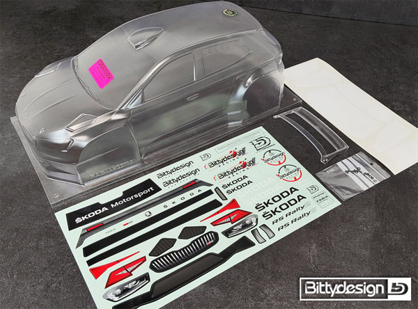 | | Bittydesign präsentiert die neue Lizenzierte ŠKODA 1/10 Fabia RS Rally2 Karosserie. Die Karosserie ist UNIVERSAL auf allen 1/10 190mm Modellen, sowohl ´Touring Chassis als auch die speziell für die Rallye-Kategorie erstellt wurden einsetzbar. Kompatibel mit Tamiya TT-02 Chassis (in allen Varianten).