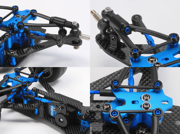 - 2.5mm Kohlefaser Querlenker unten mit 2 verschiedene Befestigungsmöglichkeiten. (3mm einstellbar auf jeder Seite)