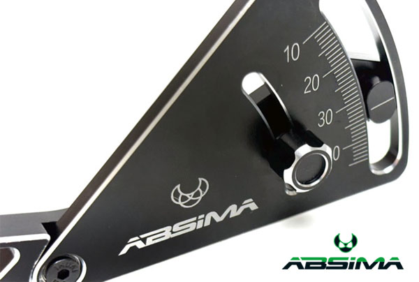| Absina präsentiert ein Werkzeug um die Fahr höhe zu messen und einstellen zu können. Dieses Tool verfügt über eine Skala von 10 bis 45mm - mit jeweils 1mm Strichen, wobei die Lehre als solches stufenlos ist. Der Arm wird unter die Chassisplatte geschoben und kann dann auf Kontakt nach oben gedrückt werden. Die Skala zeigt dann die entsprechend Fahrhöhe an.