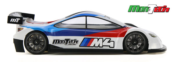 | Mon-tech Racing präsentiert seine neuste 1:10 Karosserie für die Kategorie der E-Tourenwagen 190mm, den brandneuen M-4. Nach Monaten der Entwicklung und Tests über den Sommer sagt Mon-tech, dass sich der M-4 mit seinem ´extrem präzisen Handling´ auf der Rennstrecke als herausragend erwiesen hat und insbesondere in der Stock-Kategorie eine hohe Leistung zeigt, wo er in Sachen Höchstgeschwindigkeit zu den Besten zählt.
