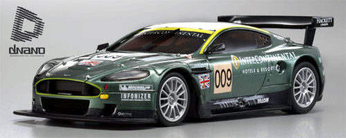 | | Kyosho stellt zwei neue dNaNo-Racer im Maßstab 1:43 in der MM-Version (Mittelmotor) vor: den Audi R8 2006 und den Aston Martin DBR No. 009 Le Mans 2009. Die Fahrzeuge verfügen über ein Mainboard mit Funktechnologie in 2,4 GHz sowie einen integrierten Transponder mit weltweit eineindeutiger ID. Per ICS-Interface lässt sich das Modell am Laptop anschließen, um Feineinstellungen am Regler vorzunehmen. Die Steuerung erfolgt präzise über ein Subminiatur- Digitalservo. Mittels einer Federplatte ist die als Starrachse ausgeführte Hinterachse mit dem Chassis verbunden. Die Kraft des Motors wird mittels eines serienmäßig montierten Kegelraddifferenzials an die Antriebsräder übertragen. Zudem glänzt die Vorderachse mit einer gefederten Einzelradaufhängung.