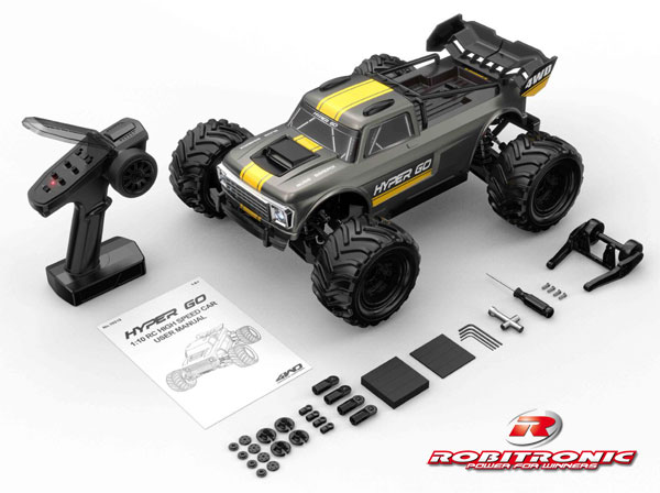 | | Kompromisslos schnell, unglaublich robust und bereit für extremes Bashing. Der MJX Hyper GO 10210 ist der leistungsstärkste Truck der legendären Hyper-GO Serie und setzt neue Maßstäbe im 1:10 Segment. Mit Unterstützung für 2S, 3S und 4S LiPo-Akkus erreicht dieses Monster Geschwindigkeiten von über 80 km/h.