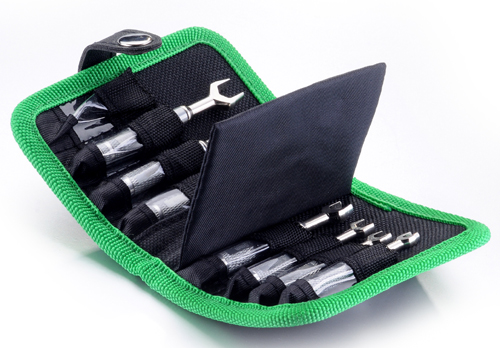 Das Set umfasst Gabelschlüssel mit 3.0mm, 3,5mm, 4,0mm, 5,0mm, 5,5mm, 6,0mm und 7,0mm weite. Das Set wird in einem praktischen Werkzeugetui, das in den klassischen Ansmann Farben gehalten ist geliefert.