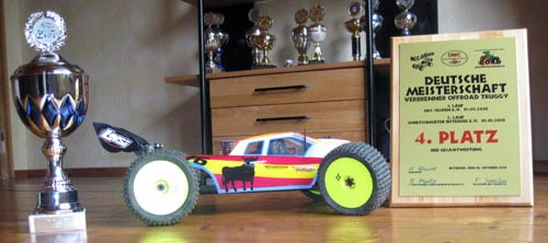 | | Nach dem Novarossi Racer Ralf "Bomb" Dennemoser beim ersten Lauf zur Truggy DM in Silixen einen guten 6. Platz erreicht hat, war er natürlich hoch motiviert für den zweiten Lauf in Bistensee. Zunächst lief es nicht so gut wie gewünscht, im Qualifying schaffte er es gerade noch, sich den letzten Startplatz im Halbfinale zu sichern.