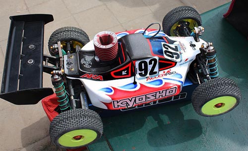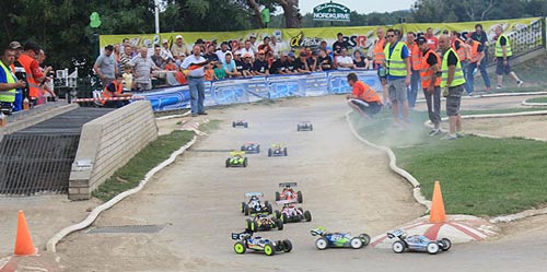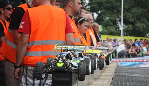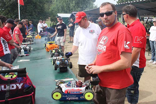 Nach der obligatorischen Fahrerbesprechung ging es dann mit den Vorläufen los und die Fahrer hatten, inklusive dem Durchgang am Sonntagmorgen, 5-mal die Chance sich möglichst weit oben in der Rangliste für die Finale zu qualifizieren. Vom Team KYOSHO kamen Denis Macek, Timo Engelstätter, Tim Bremicker und Thomas Paßmann am besten mit den Bedingungen zu recht und führten das Team mit Startplätzen in den Halb- bzw. Viertelfinalen an. Tim konnte ins Halbfinale aufsteigen und seine Chancen waren, konnte dies aber im Halbfinale leider nicht wiederholen.
