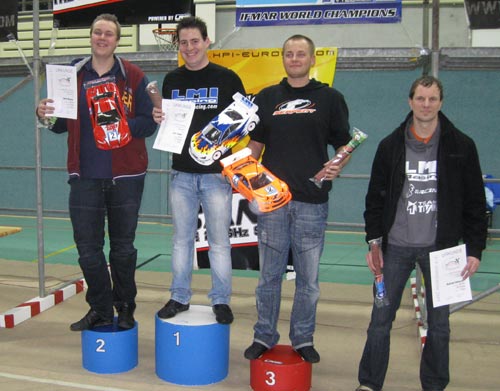 | | Beim LRP Challenge Lauf am 22.01.2012 in Hildesheim konnten die beiden LMI Racing Teamfahrer Lars Hoppe und Timo Schröder (beide mit SAKURA XI) einen Doppelsieg erringen! Lars Hoppe startete in der Stock-Klasse von Pole und gewann das Rennen. Timo Schröder ging in der Klasse 17,5T von Platz 3 ins Rennen und konnte ebenfalls den Sieg holen!