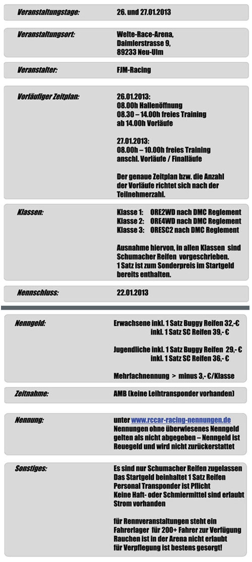 Ausschreibung: Am 26./27. Januar findet das erste 1:10 Offroad CS-Race in der Welte-Arena in Neu-Ulm statt.
