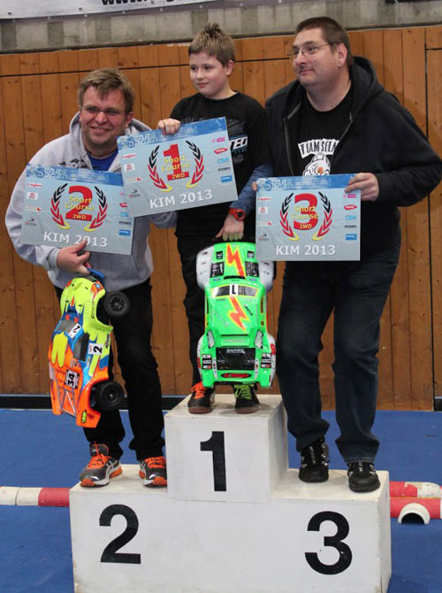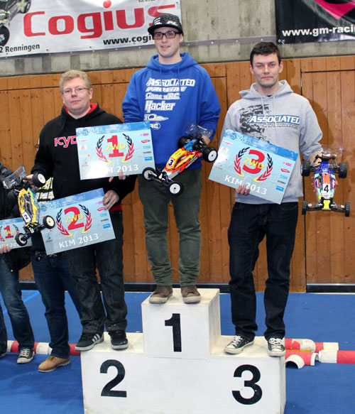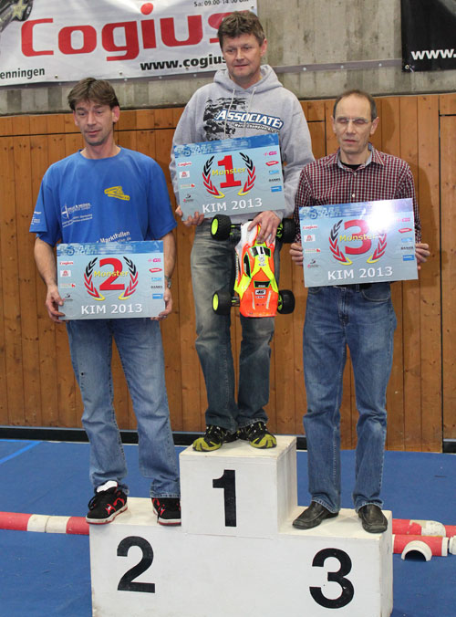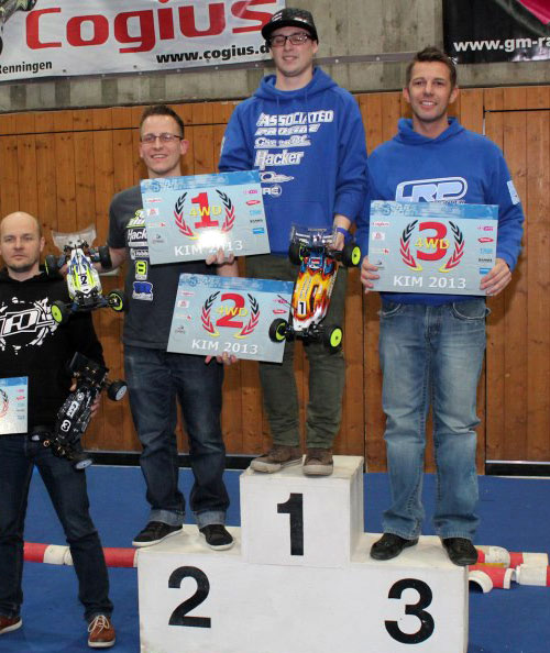 | | TEAM ASSOCIATED gewinnt alle Klassen! Am vergangenen Wochenende dem 09./10.02.2013 fand zum 5ten mal das Köngener Indoor Masters (KIM) statt. Wie auch die Jahre zuvor, war das KIM stark besetzt. Insgesamt fanden 122 Nennungen den Weg nach Köngen. Darunter befanden sich auch 7 TEAM ASSOCIATED Teamfahrer.