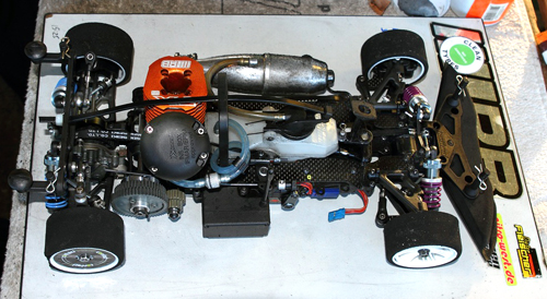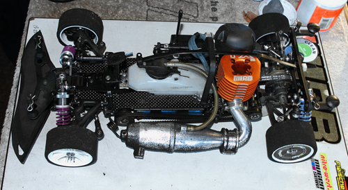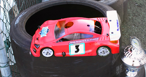 Ich selbst war gespannt, wie sich mein Mugen MTX-5, der mit einigen neuen Teilen ausgestattet war, auf der anspruchsvollen Strecke fahren lassen würde, denn um die im vergangenen Jahr zum Teil aufgetretenen Getriebeprobleme in den Griff zu bekommen, hatte Mugen Seiki mit einer neuen Chassisplatte aus einem steiferen Alumaterial, einem einteiligen Motorbock, sowie Getriebezahnrädern aus einem haltbareren Kunststoff reagiert. Da ich einige Tage vor dem Rennen bereits ein paar Trainingsrunden bei noch nicht besonders guten Griffverhältnissen in Bad Breisig drehen konnte, hatte ich schon ein einfach zu fahrendes Setup erarbeitet. Nach Rücksprache mit meinem Teamkollegen Steve Baumgarten aus dem SK-Süd entschied ich mich aber noch vor dem Training am Samstag für härtere Differenziale. Damit funktionierte mein MTX-5 auf Anhieb sehr gut und in Kombination mit den Contact-Reifen in 32° und 37° gelangen mir bereits sehr gute Rundenzeiten. Lediglich unter Last untersteuerte mein Auto relativ stark und auch verschiedene kleinere Änderungen brachten hier keine wirkliche Verbesserung. Erneut beeindruckend präsentierte sich dagegen mein RB TX-R Motor, der mit absolut perfekten Laufeigenschaften und einer unglaublichen Leistung beeindruckte. In der Regel wünscht man sich ja meistens mehr Motorleistung, im Falle meines RB TX-R war es jedoch zum Teil so, dass an manchen Stellen ein weniger brachiales Einsetzen der Beschleunigung wünschenswert gewesen wäre.