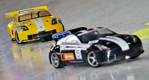 Für die nötige Traktion und die spektakulären Drifts auf der eisglatten Piste sorgten weiche HPI Rallyereifen ohne Einlagen. Im Gegensatz zu anderen Rennen, ist der Profilabrieb beim Eisspeedway eigentlich nicht vorhanden. Als Haube kamen die HPI Nissan 350Z Karosserien zum Einsatz.