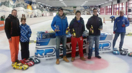 Jeweils 5 Fahrer gingen mit identischem Material – einem HPI Super EP – auf den eisglatten Untergrund ins Rennen … vielleicht sollte man eher sagen zum Driften. 1,5 Minuten dauerte jeder Lauf und schnell zeigte sich, dass die Champions der letzten Jahre wieder ganz vorne mit dabei sein würden. Bester und schnellster beim Tanz auf dem Eis 2014 wurde Ronald Völker. Er fand das richtige Gefühl für den ungewöhnlichen Untergrund und setzte sich gegen Bastian Schäfer und Christian Mertke durch … alles Sieger der vergangenen Jahre.