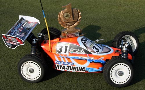 Dario Vita mit Mugen Seiki MBX-6, RB WS9, TOUREX Tires X-200 Syntrack, Speed 2.5 Kupplung, RB Fuel.